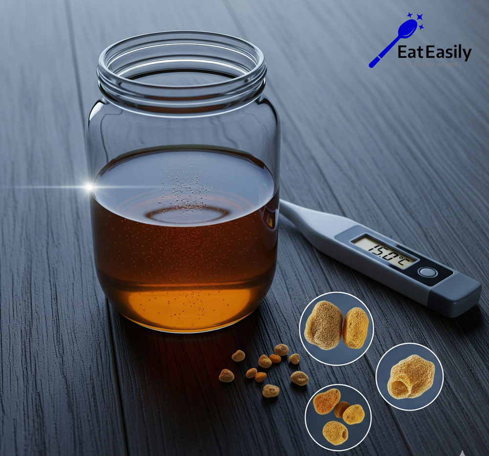 - یخچالگذاشتن عسل: کریستالیزاسیون سریعتر → اصلاح: دمای اتاق پایدار.